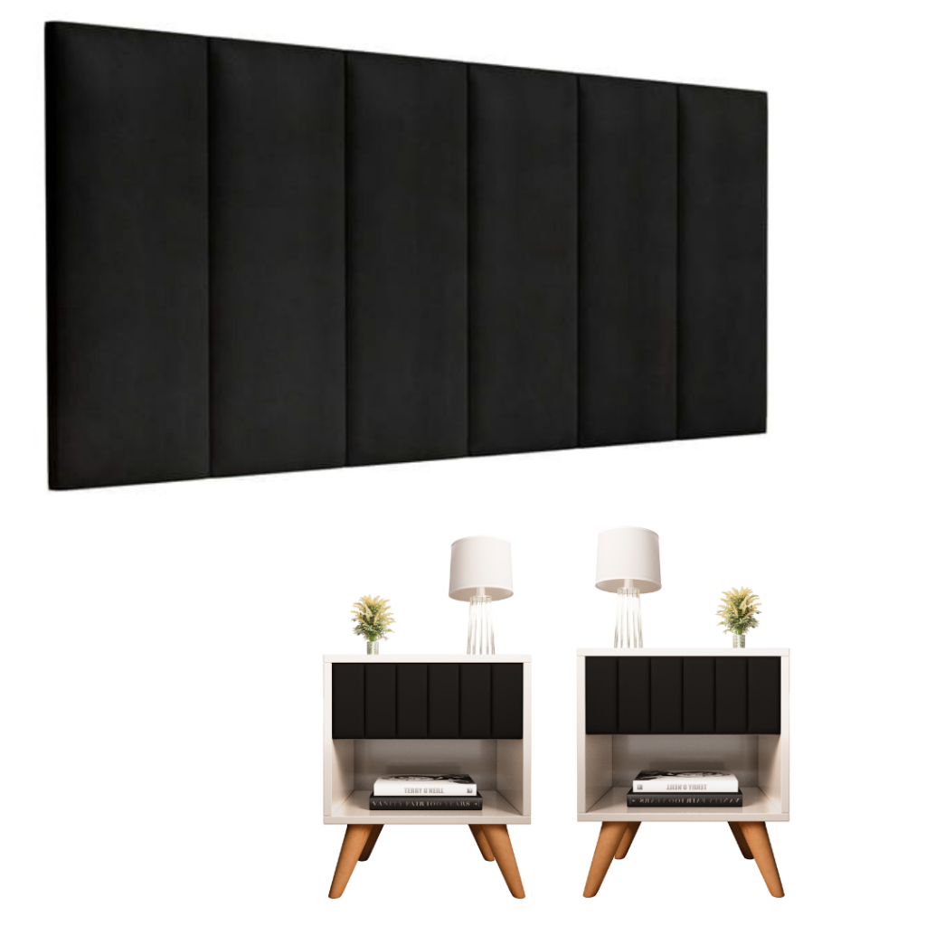 KIT LUXO 1 CABECEIRA 1.95 KING 2 MESA DE CABECEIRA DECOR GLAMUR MODELO DA CABECEIRA ESCOLHIDA PÉ EM MADEIRA GAVETA ESTOFADA CORREDIÇA TELESCÓPICA-JC