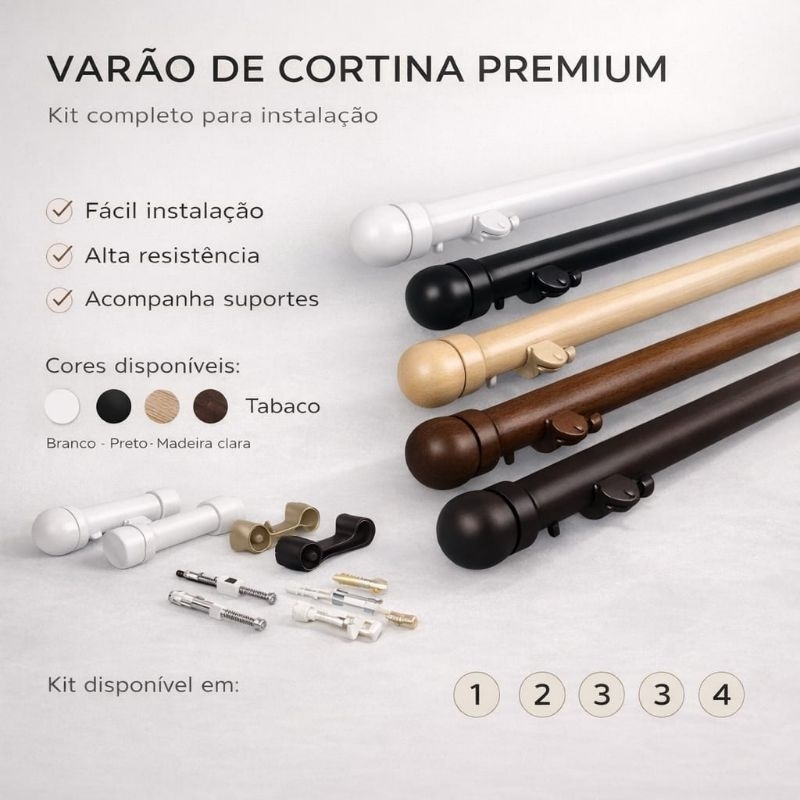 Kit Varão de Madeira para Cortina – 1, 2, 3 ou 4 Unidades | Suporte Firme e Elegante