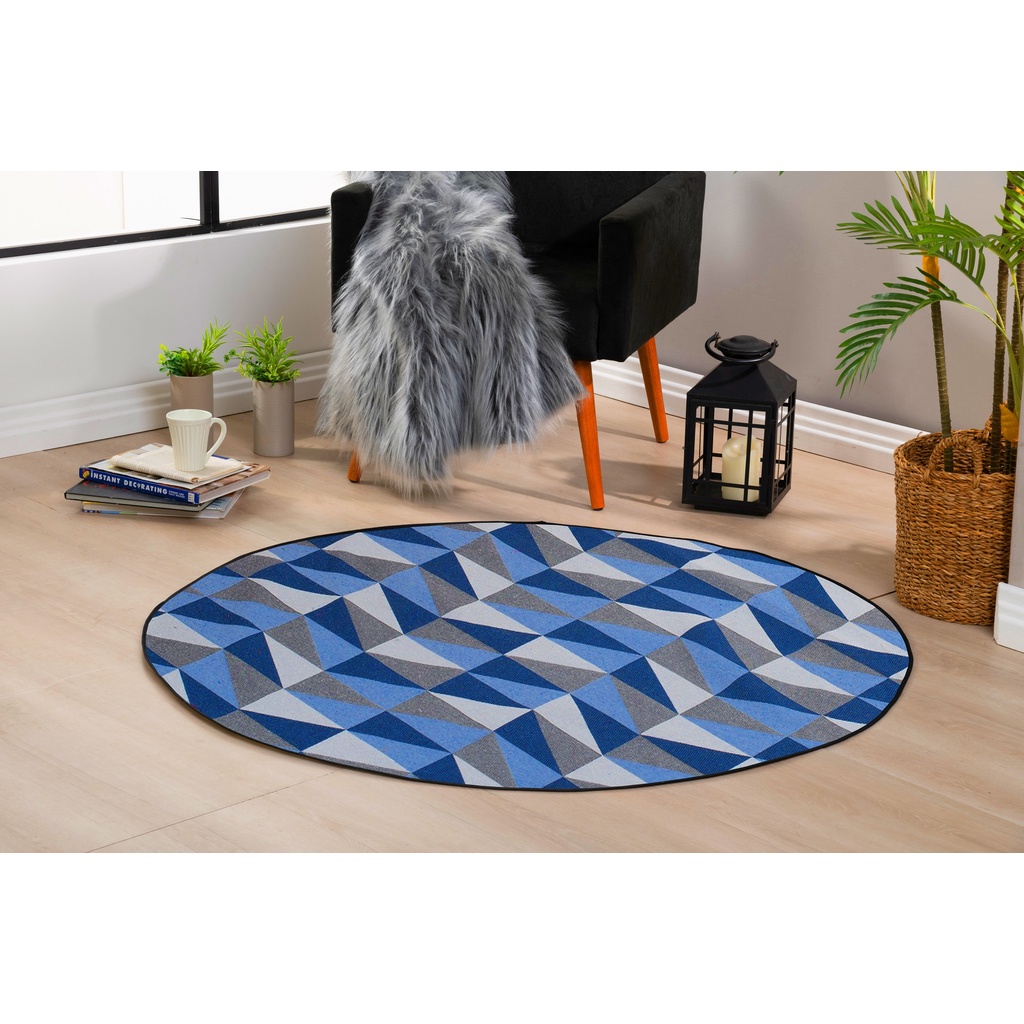 Tapete Redondo Sala/Quarto Redondo 1,40M x 1,40M Com Antiderrapante Miami Azul