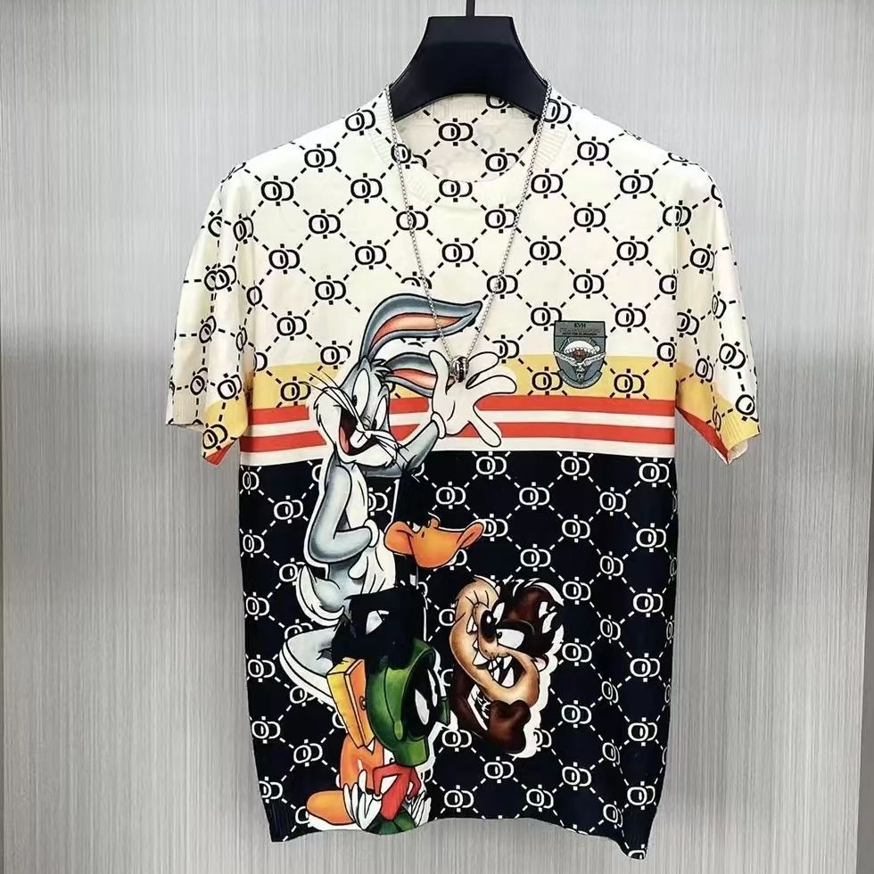 Camiseta Manga Curta Manga Curta Homens Novo Estilo Moda Carta de Tendência Cartoon Rabbit Impressão Casual Meia Manga Top Camiseta