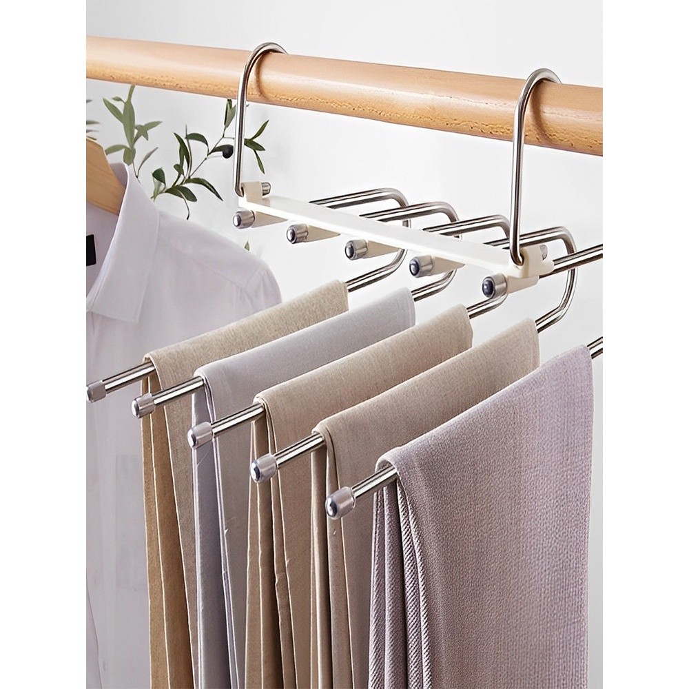 KIT 3 Peças Cabide De Roupas 5 Em1 Organizadores Para Guarda Calças Retrátil Multifuncional Aço Inoxidável