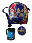Kit Escolar Sonic 3 Peças Lancheira Caneca E Bola