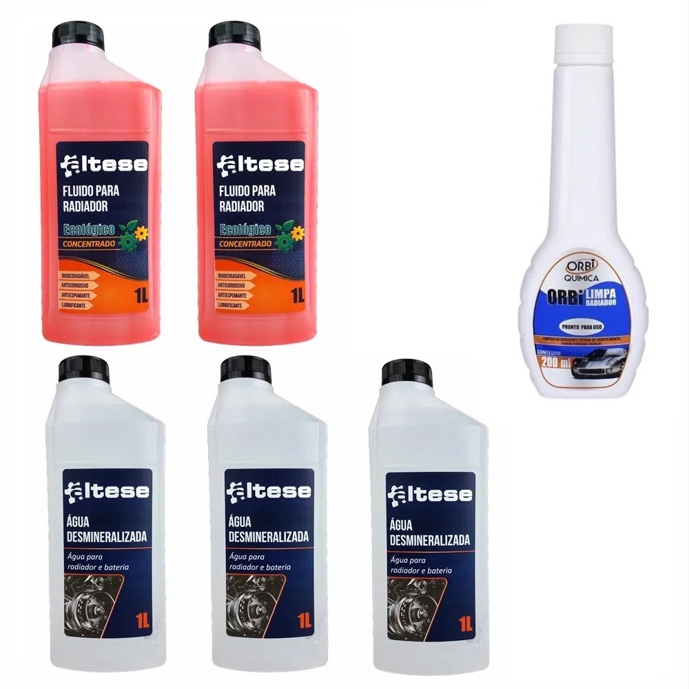 Combo 2 Litros Aditivo Rosa Concentrado + 3 Litros de Água Desmineralizada Altese + 1 Limpa Radiador Orbi 200ml