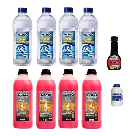 Combo 01 Selante Previne 04 Litros Aditivo T5 Concentrado Long Lif Rosa 01 Limpa Radiador 04 Litros Água Desmineralizada