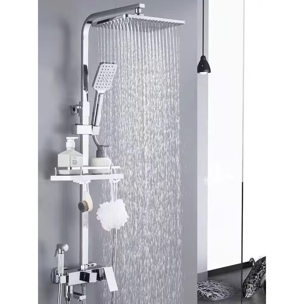 Prata cinzenta chrome 3/4-way torneira do chuveiro chuvas chuveiro misturador de água quente e fria bidé torneira prateleira de mercadorias para banheiro misturador de chuveiro Superior luxo chuveiro chuveiro conjunto
