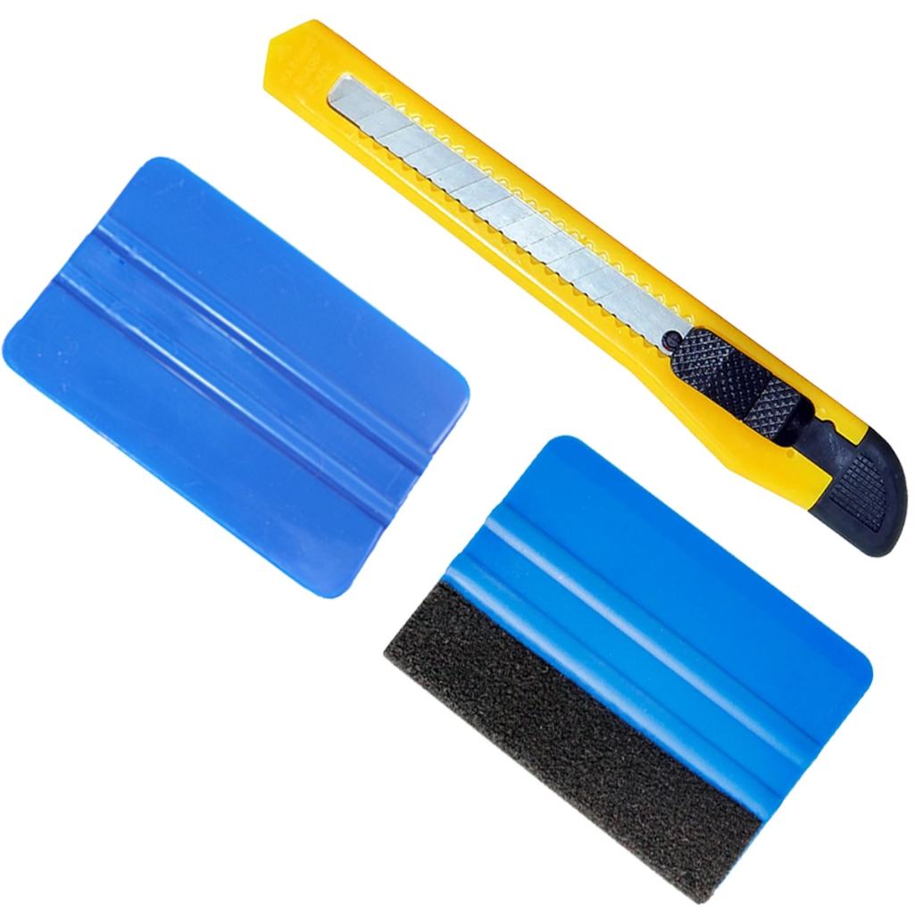 Espátula de Plástico Com Feltro e Estilete em Kit Para Envelopamento Automotivo e de Móveis