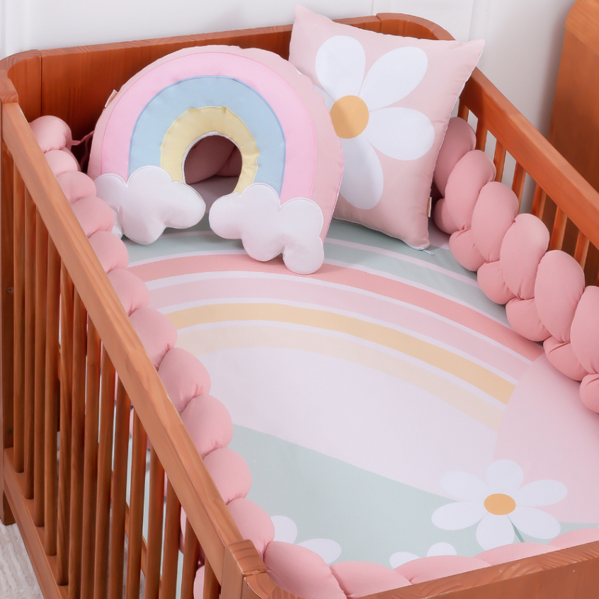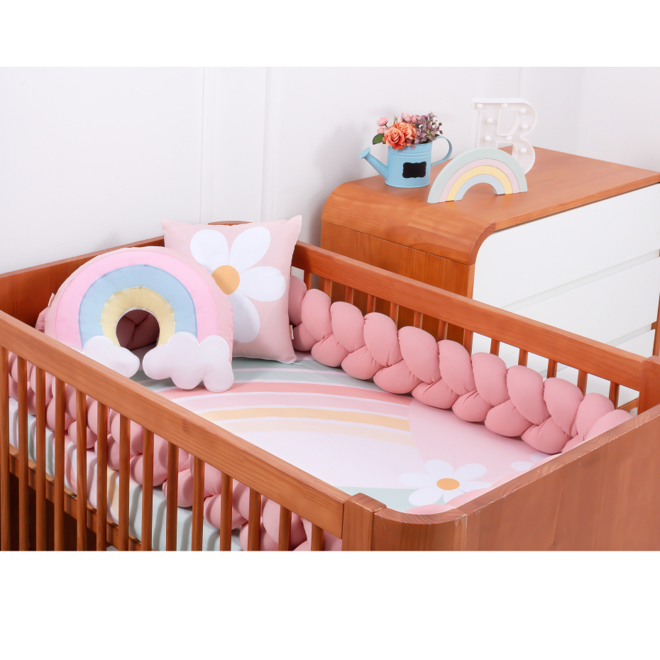 Kit Berço Americano Carinho 04 Peças Brubrelel Menino Menina Baby Bordado Ninho Redutor Amamentação Flor Dinossauro Coração Bordado Ninho redutor Rolinho Neutro Unissex Menino Feminino Masculino Menina Brubrelel Baby Trocador Luxo Arco Íris