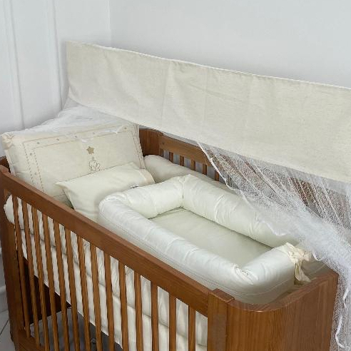 Kit Enxoval Completo Linho Berço Americano + Amamentação + Trocador Linho+Ninho Redutor Luxo