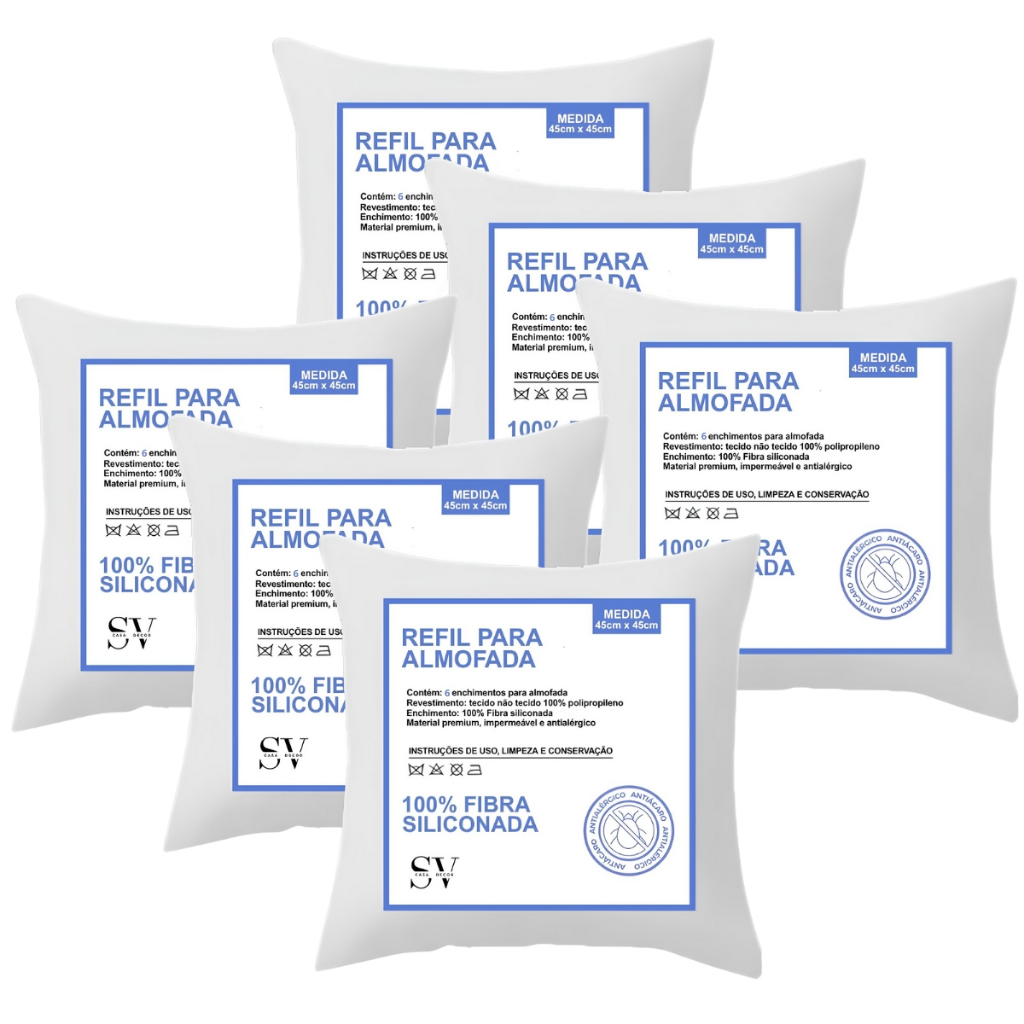 Kit 6 Enchimento De Almofada Refil 45x45cm Fibra Siliconada TNT Premium Decoração Sala Casa Silicone