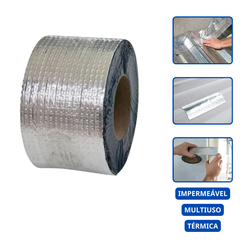 Fita Manta Asfáltica Auto Adesiva Multiuso 10cm Larg x 10mts Compr Aluminizada Fita para Vedação, Vazamentos, Tubos, Telhados e Uso Geral