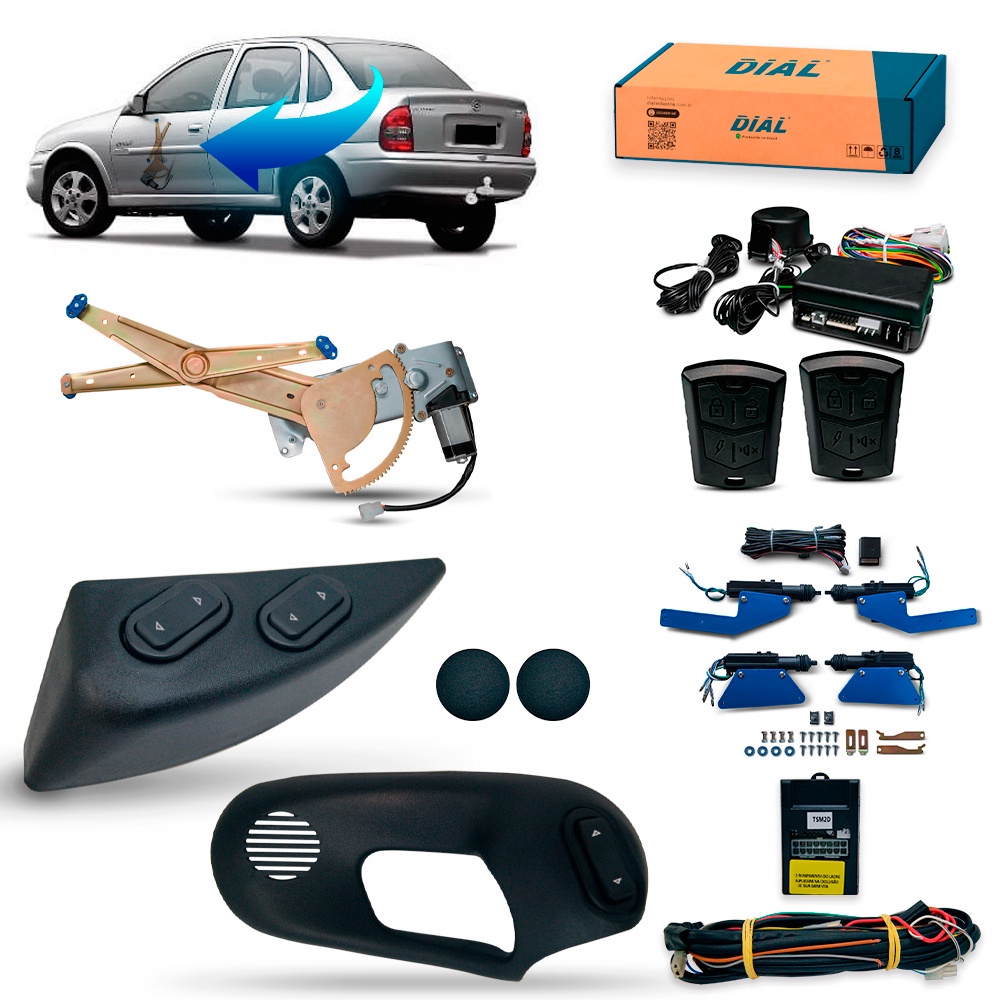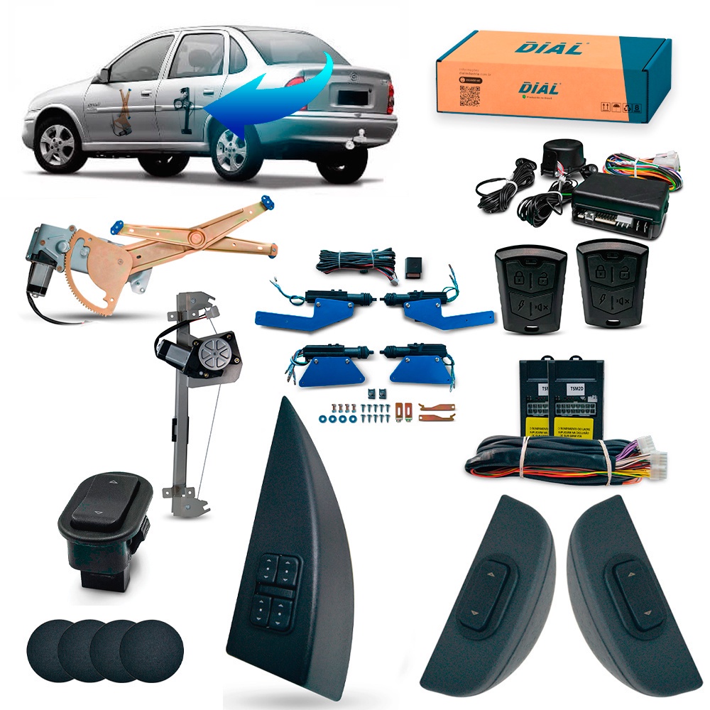 Kit Vidro Eletrico + Trava Eletrica + Alarme Classic e Corsa Super Completo 4 Portas Inteligente