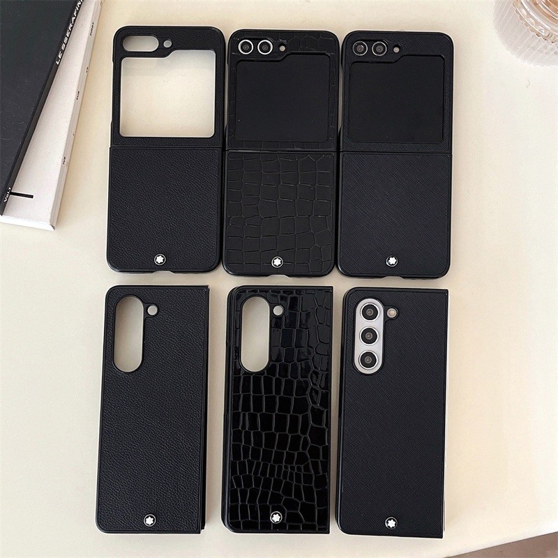 Business Simple Pure Black Crocodile Litchi Cross Texture Capa Rígida Protetora Para Samsung Galaxy Z Fold 6 5 4 Flip6 F