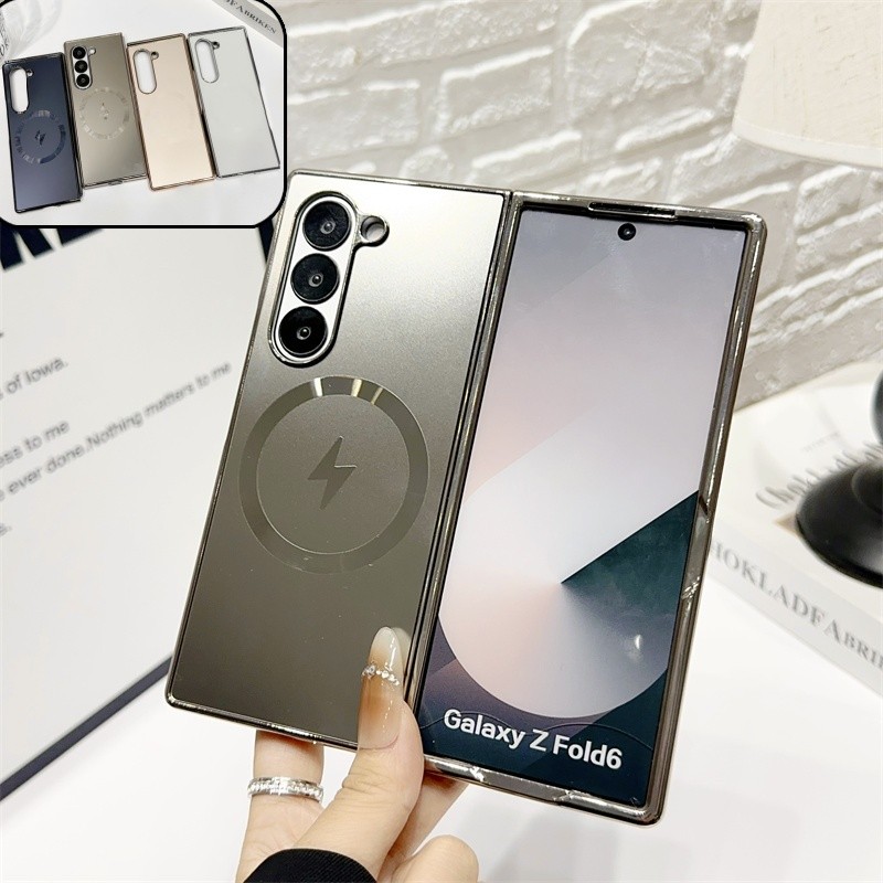 Capa Magnética Fosca Galvanizada Para Samsung Galaxy Z Fold 6 5 4 3 De Carregamento Sem Fio À Prova De Choque