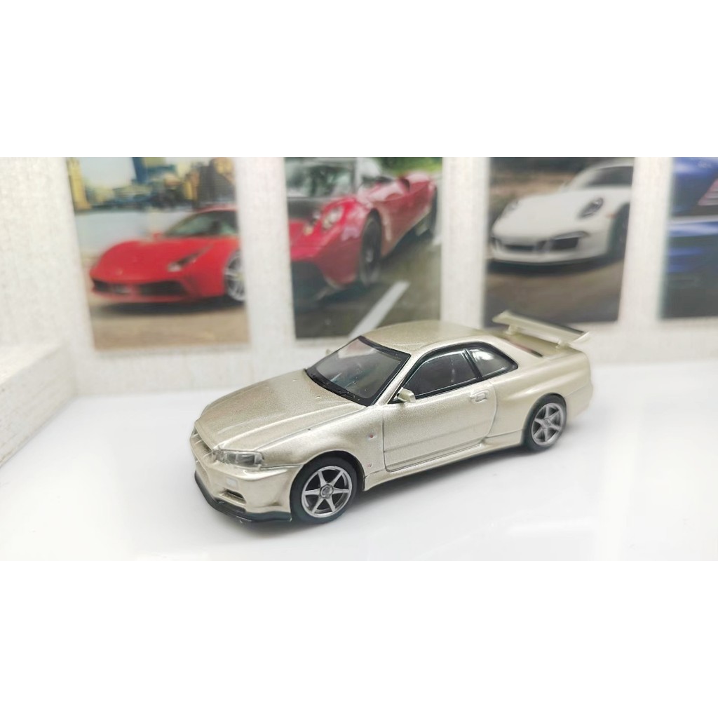 Mini GT 1: 64 Nissan GTR R34 Modelo de carro fundido em liga branca