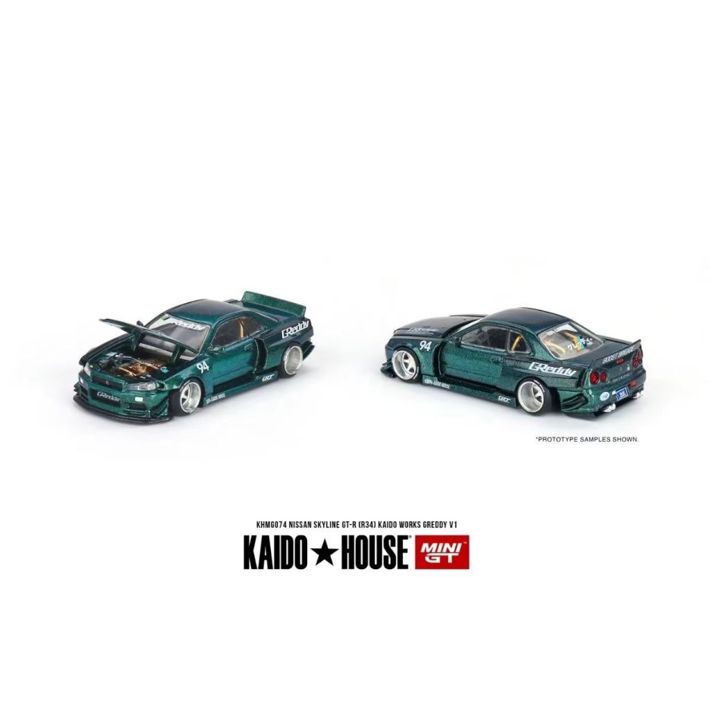 Mini GT x Kaido House KHMG158 1/64 Nissan Skyline-R R34 Works V2 Aero SHINJUKU V2 Modelo De Carro Em Escala Fundida