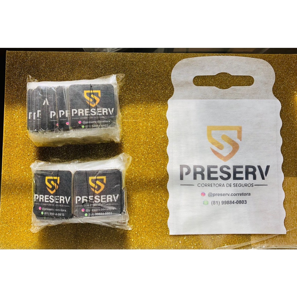Kit Com 20 Cheirinhos Aromatizantes Personalizados E 20 Lixeiras Brancas Em Tnt Personalizadas