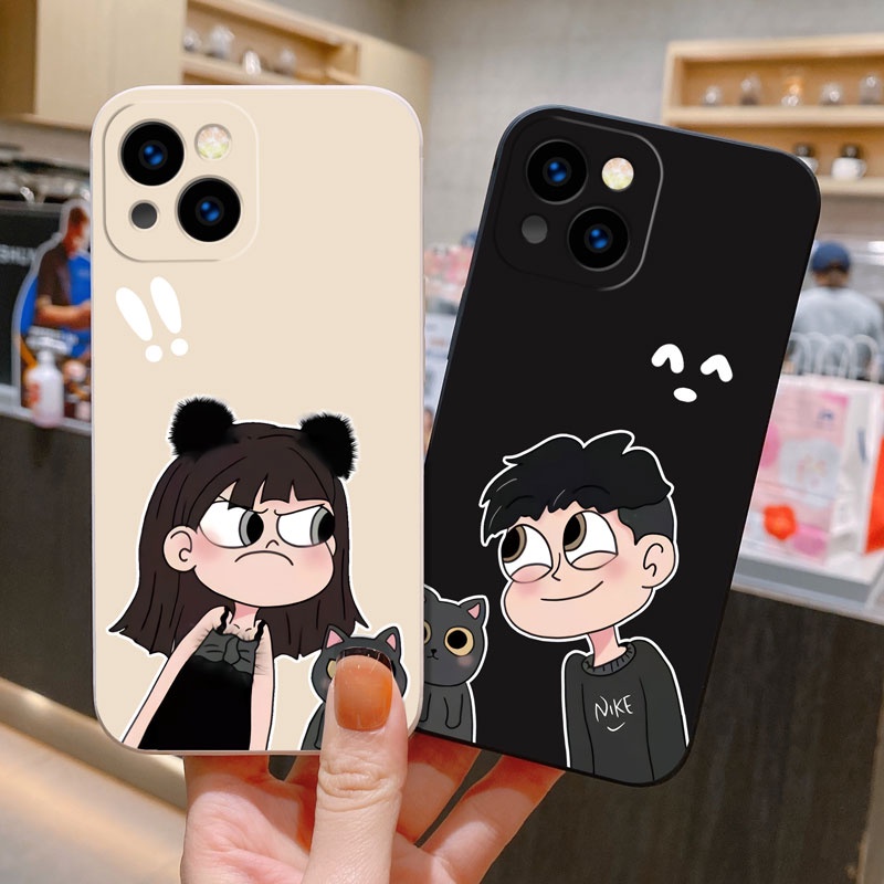 Capa Para iPhone 14 13 12 Mini 11 Pro MAX XR X XS 8 7 6 Plus SE3 SE2 Cartoon Cat Capas Telefone De Casal De Silicone
