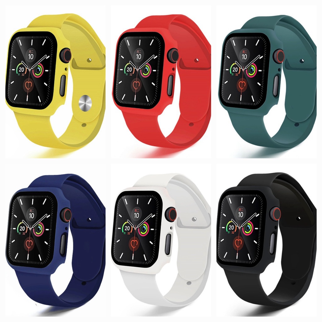Kit Pulseira E Capinha 2 Em 1 Para Relógio Smartwatch Pulseira Silicone Sport Esportiva Confortável - Mais Case Capa Bumper Protetora Com Vidro na Tela Iwo 38/40/41/42/44/45mm Diversas Cores
