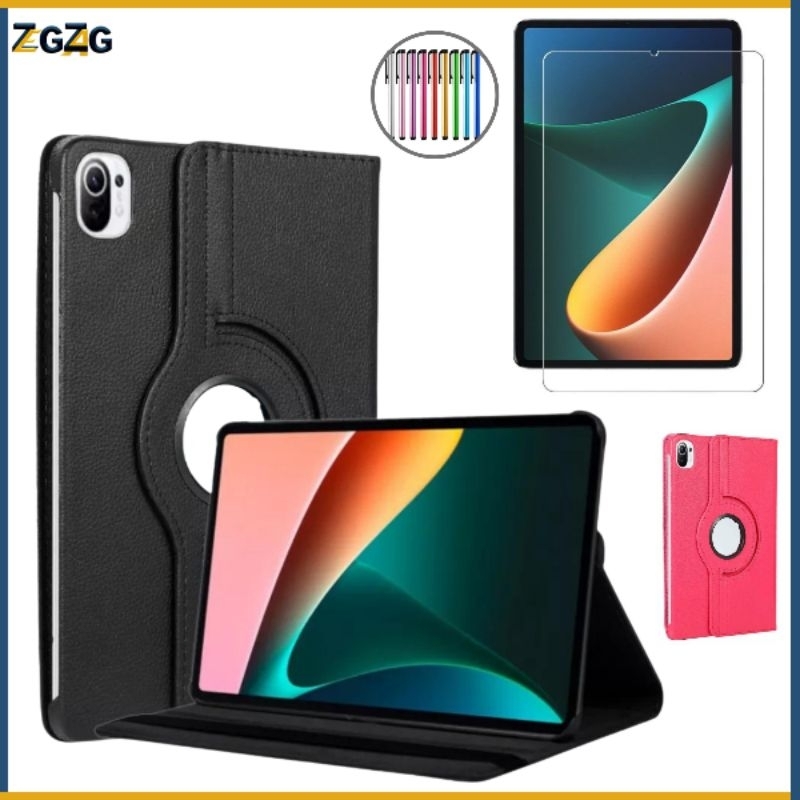 Kit 2 em 1 Capa Capinha Giratória Compatível Com Xiaomi Mi Pad 5 De 11 Polegadas + Película De Vidro 9H Protetor De Tela Transparente / Case Flip 360º
