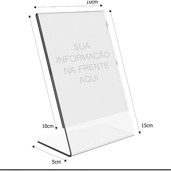 Kit com 10 Display Expositor Acrilico L Tamanho A6 10x15cm Horizontal