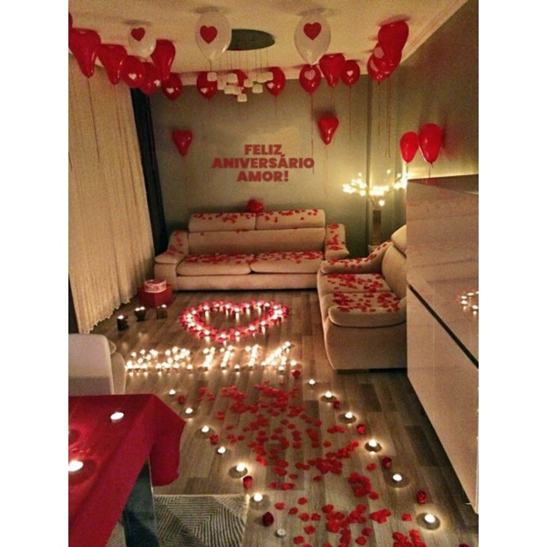 KIT DECORAÇÃO SURPRESA ROMÂNTICA com frase personalizada+ velas+ pétalas+ balões