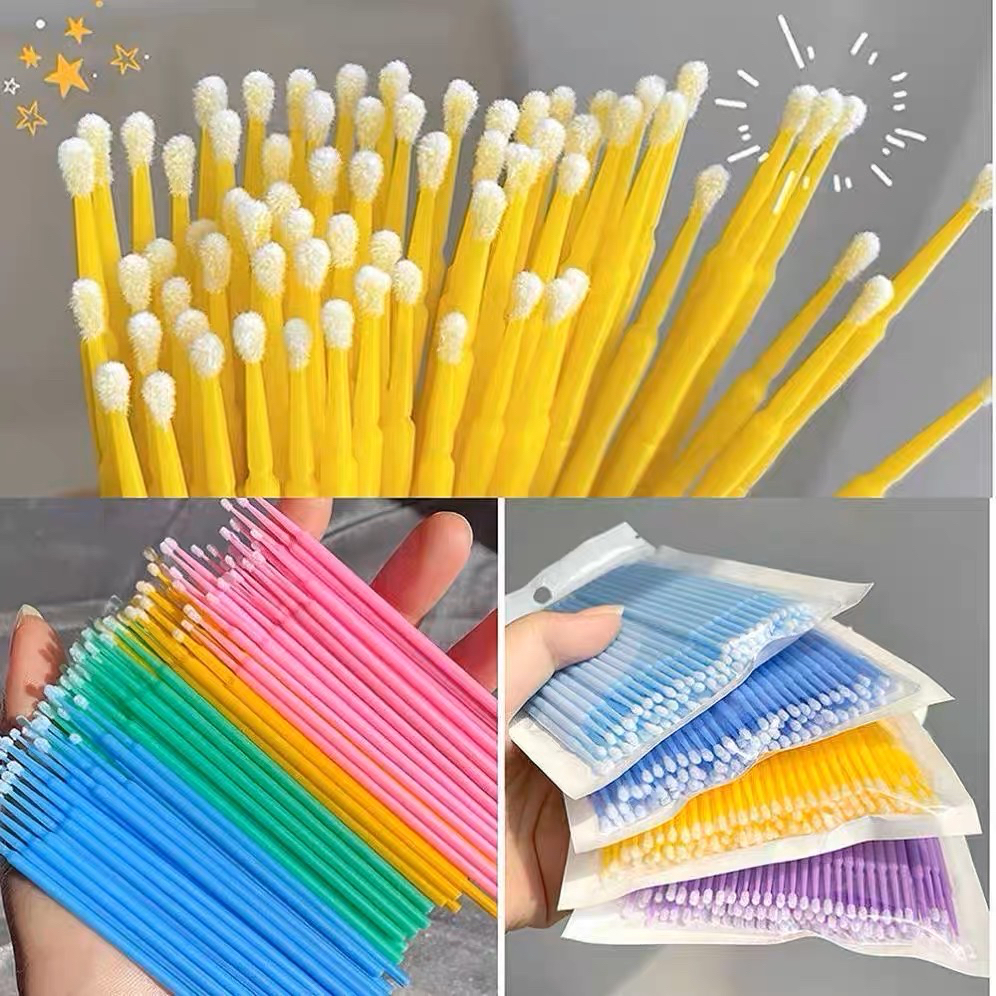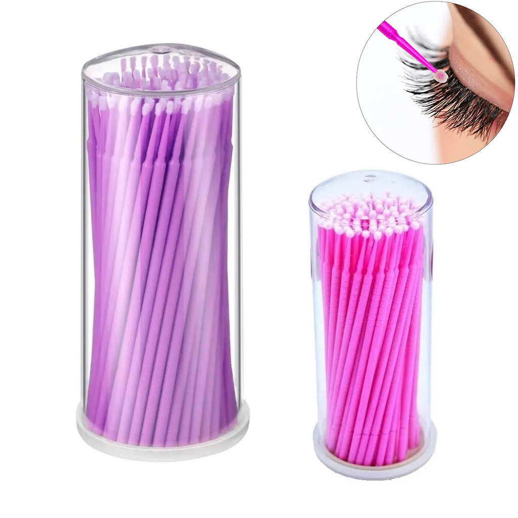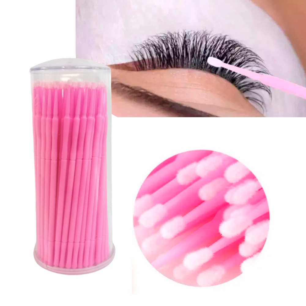 Kit 100 Microbrush Cotonete Alongamento Fio A Fio Cílios