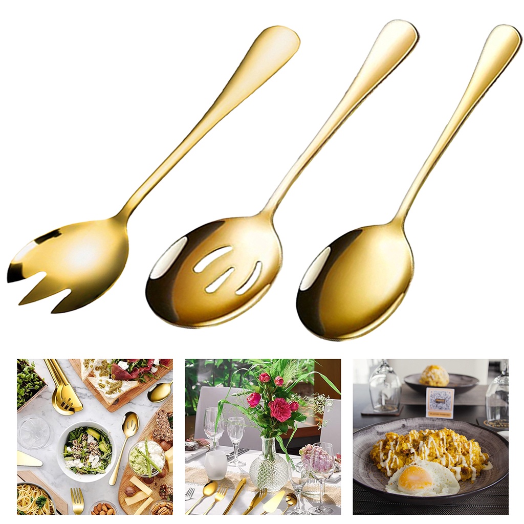 MODUS 3 Peças Talheres De Aço Inox Dourado Garfo De Colher De Macarrão Para Salada Na Cozinha Talheres De Bom Gosto