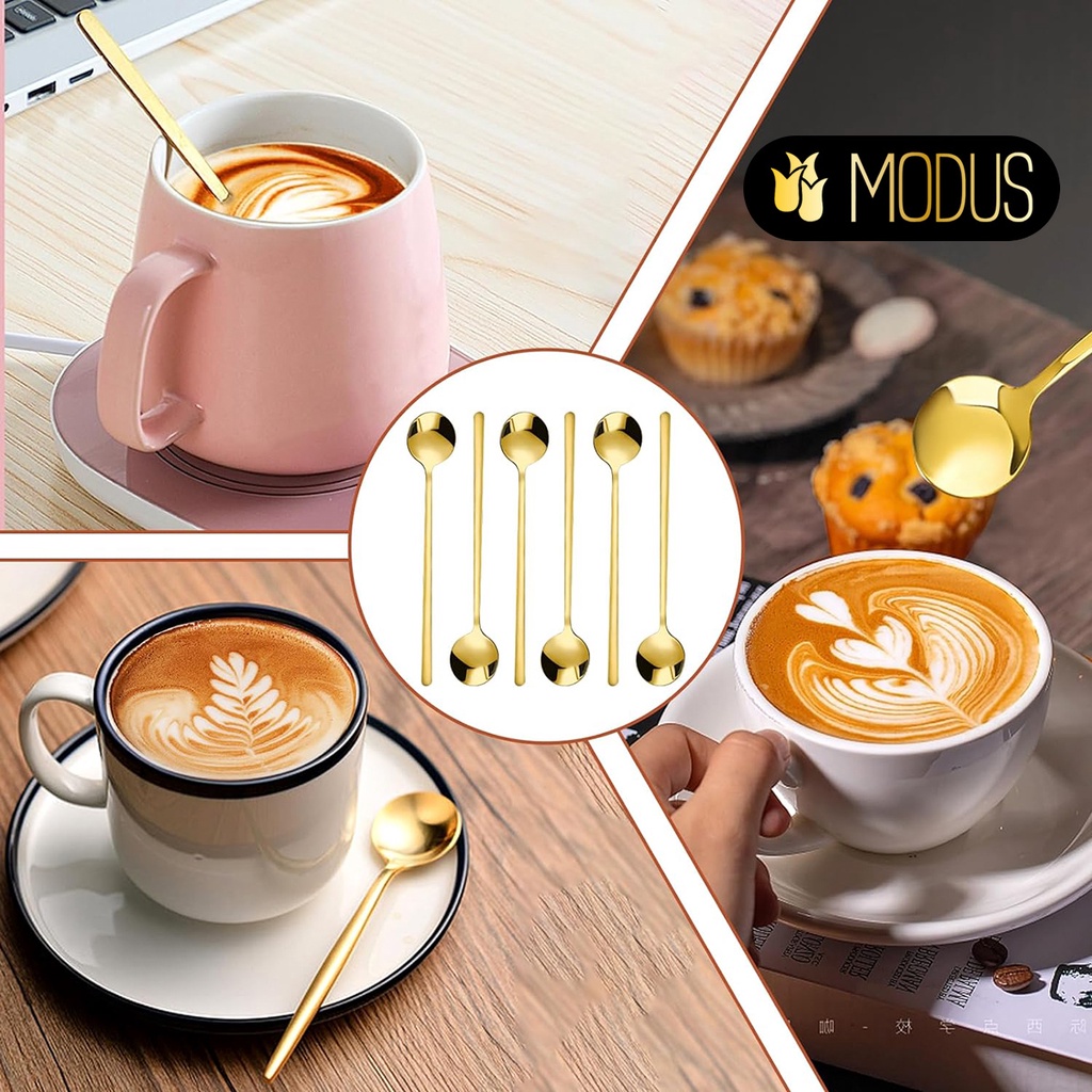 Modus 6 Peças Colher de Café Chá Aço Inox Dourado 15cm