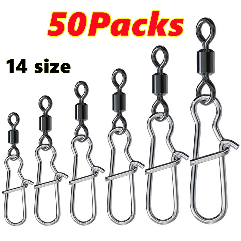 50 Pçs/Lote Conector Pin De Aço Inoxidável Rolamento De Giro Com A Pressão De Pesca Anzol Isca Enfrentar