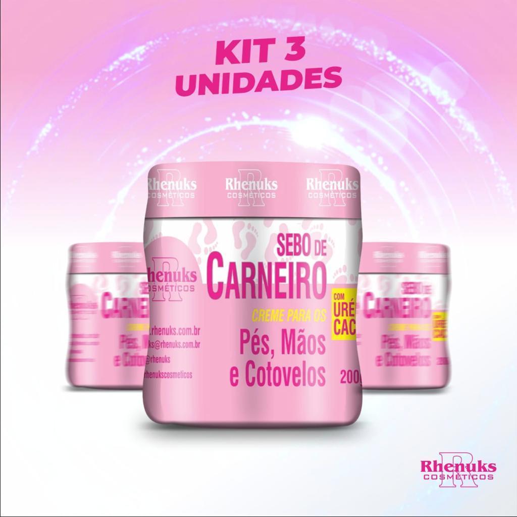 3 Creme Hidratante De Uréia 200g Sebo de Carneiro Pés Rachados E Ressecados - Rhenuks Cosméticos