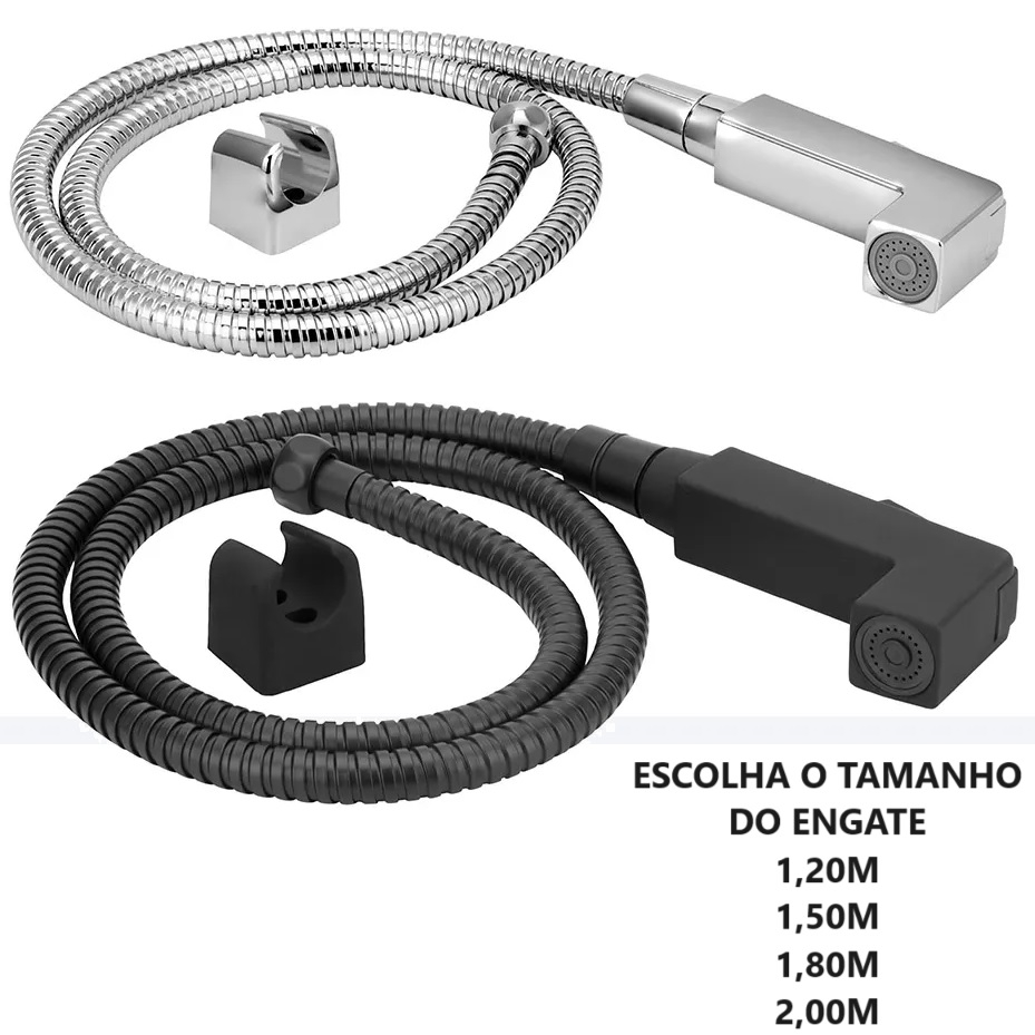 Kit Ducha Higiênica com Engate Mangueira Flexível e Gatilho ABS Quadrado ( Escolha Tamanho do Engate e Cor )