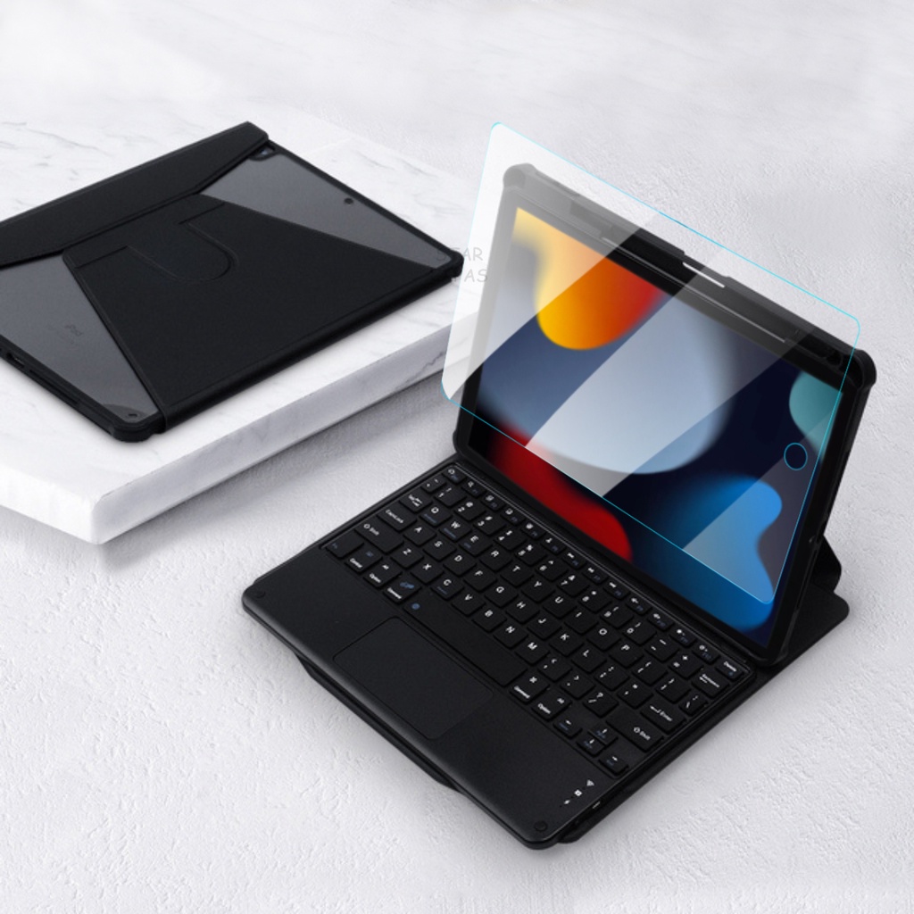 Case Teclado Touchpad 360 Slot Caneta Para iPad 9 10.2 A2602 A2603 A2604 A2605 + Película Vidro