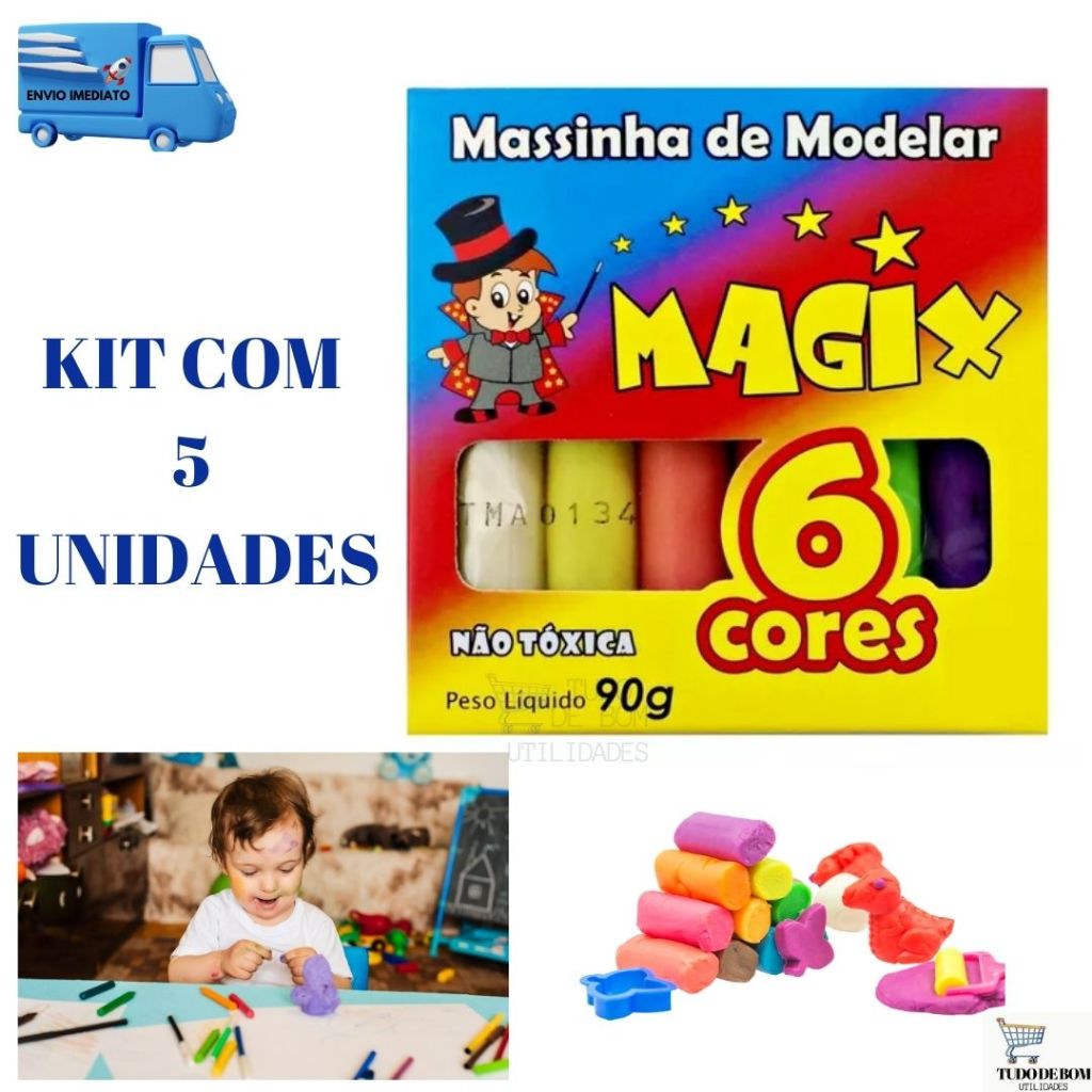 Kit 5 Massinha de Modelar Escolar Infantil 6 Cores Não Toxica