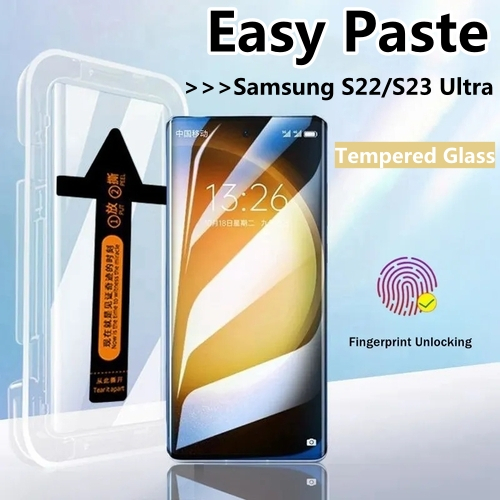 Vidro Temperado Com Um Clique Para Samsung Galaxy S23 ultra/S22 Protetor De Tela Cola De Borda Desbloqueio De Impressão Digital Película De Fácil Instalação