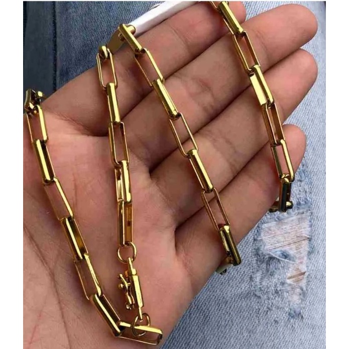 Corrente masculina dourada banhada elos quadrados Tijolinho Grumet de aço inox 6mm - 60cm ou 70