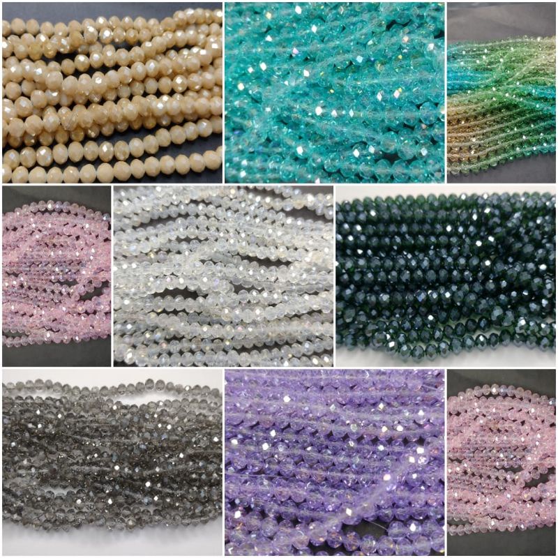 Fio de cristal facetado de vidro flat 6mm cerca de 85 A 90 contas por fio - Montagem de terços, pulseiras, tiaras, guias, japamalas semijoias em geral (ANÚNCIO 1)