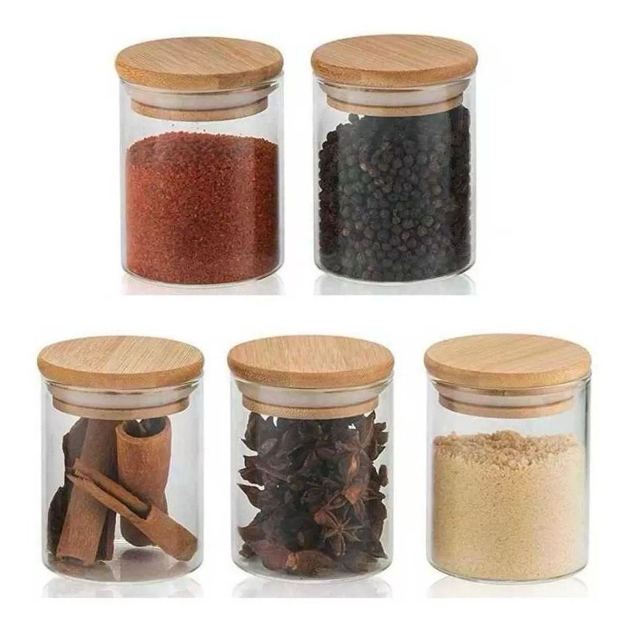 Kit com 1, 2, 3 ou 4 porta Mantimento de Vidro 120ml Pote Hermético de vidro com Tampa de Bambu
