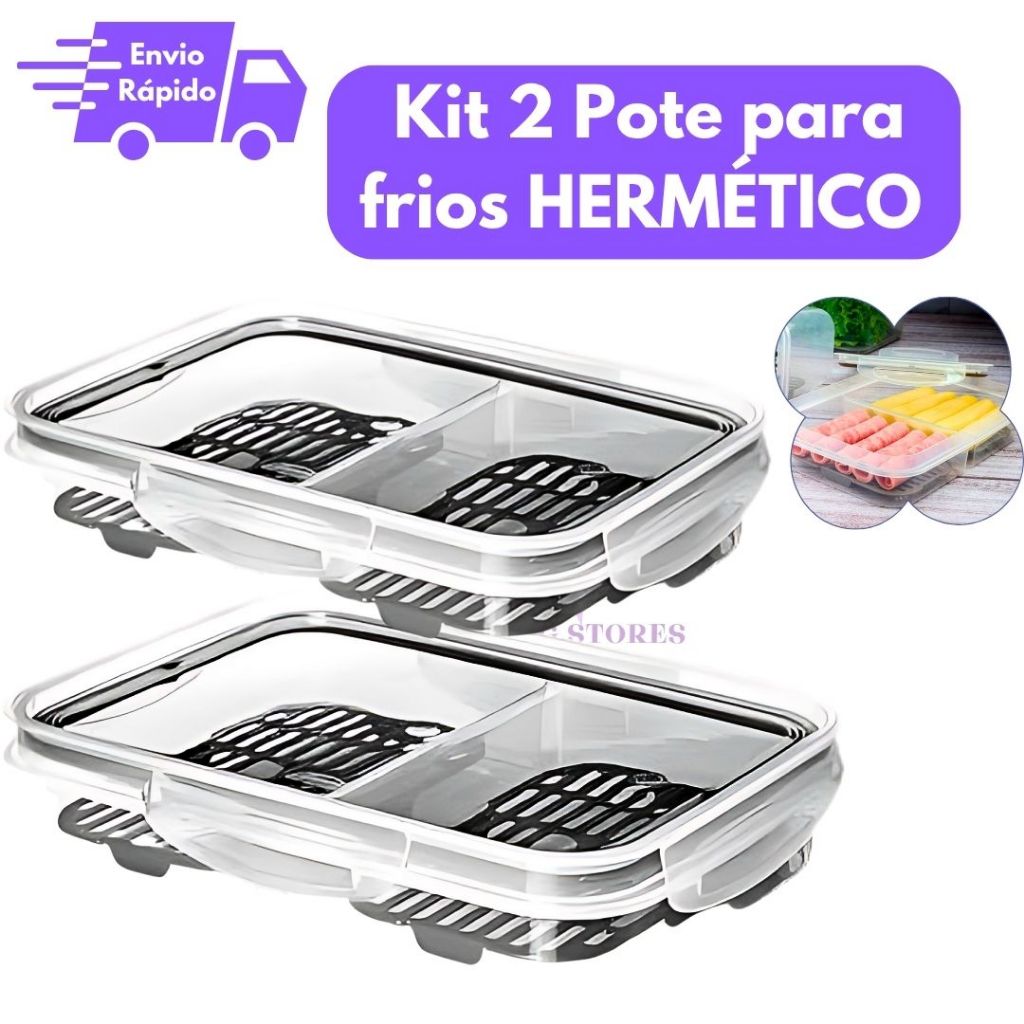 Kit 2 Porta Frios Com Escorredor Tampa Trava Pote Hermético 2 Divisória
