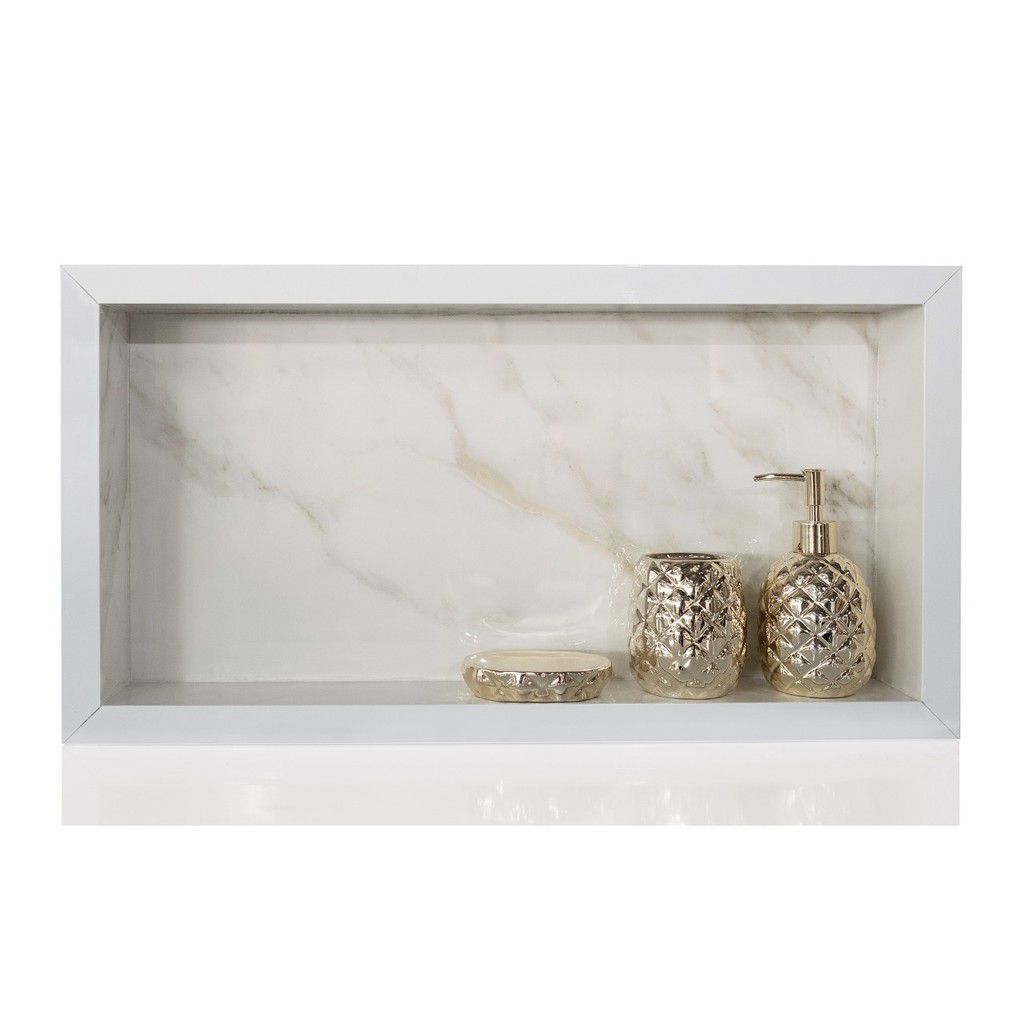 Nicho De Porcelanato Carrara Com Bordas Brancas Acessório Para Banheiro 60x30x10 Elegance