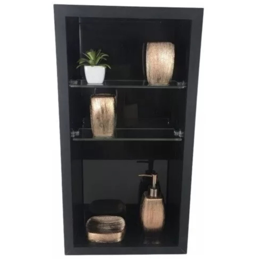 Nicho Em Porcelanato Vertical Preto Para Banheiro Com Prateleiras De Vidro