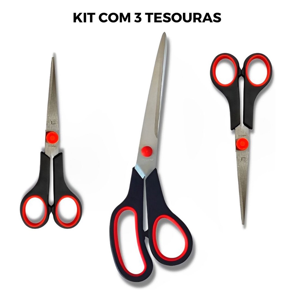 Kit 3 Tesouras Aço Inox Diferentes Tamanhos Multiuso Cozinha Artesanato