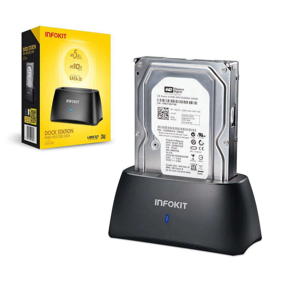 Dock Station HD e SSD 2.5 e 3.5 Sata Até 10tb 5 Gbps Usb 3.0 Infokit ECASE-Z320