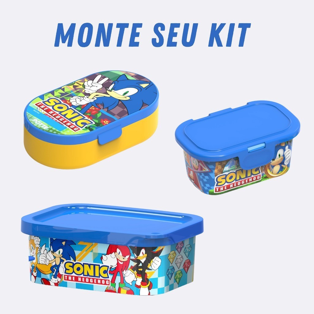 Kit Pote Infantil Sonic Marmita Lanche Escolar Organizador Lancheira Bebê Criança