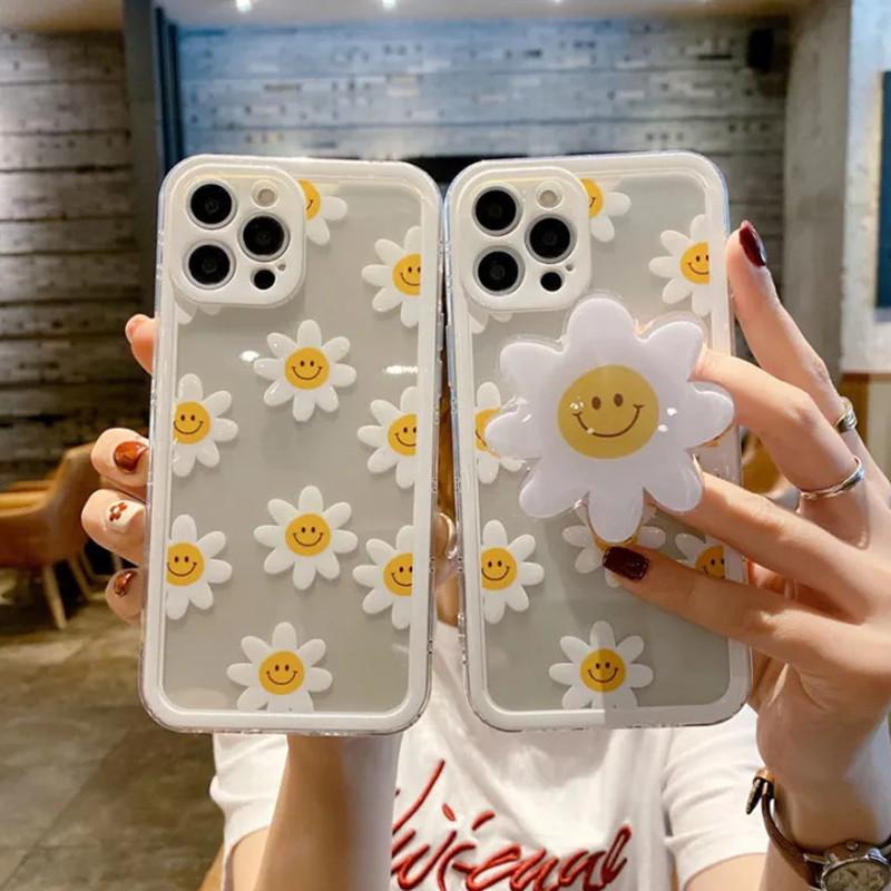 Estojo Para iphone 15 Pro Max 11 13 14 12 Mini 6 7 8 Plus X XS XR Caixa Do Telefone Suporte De Silicone Girassol Tampa Desenho Animado Transparente Anti-Queda