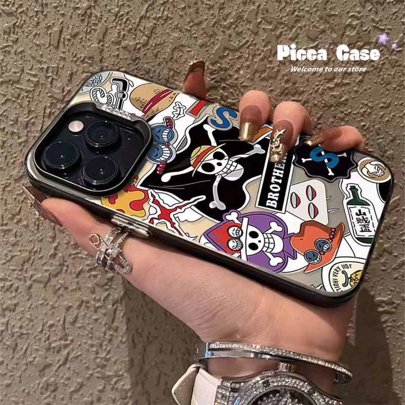 Caixa Macia Para Desenho Animado One Piece Popular Compatível IPhone 15 14 11 13 12 Pro Max XR 7Plus 7 8 Plus X XS 14 15 Marca De Tendência Adesivo De Rótulo De Criatividade Revestimento Metálico
