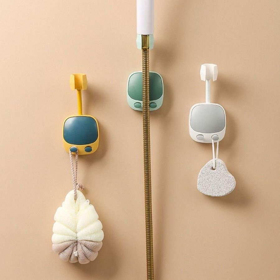 Suporte De Chuveiro Ducha e Chuveirinho Universal Com Gancho Para Banheiro Adesivo Autocolante De Base Fixa Suporta Até 10Kg