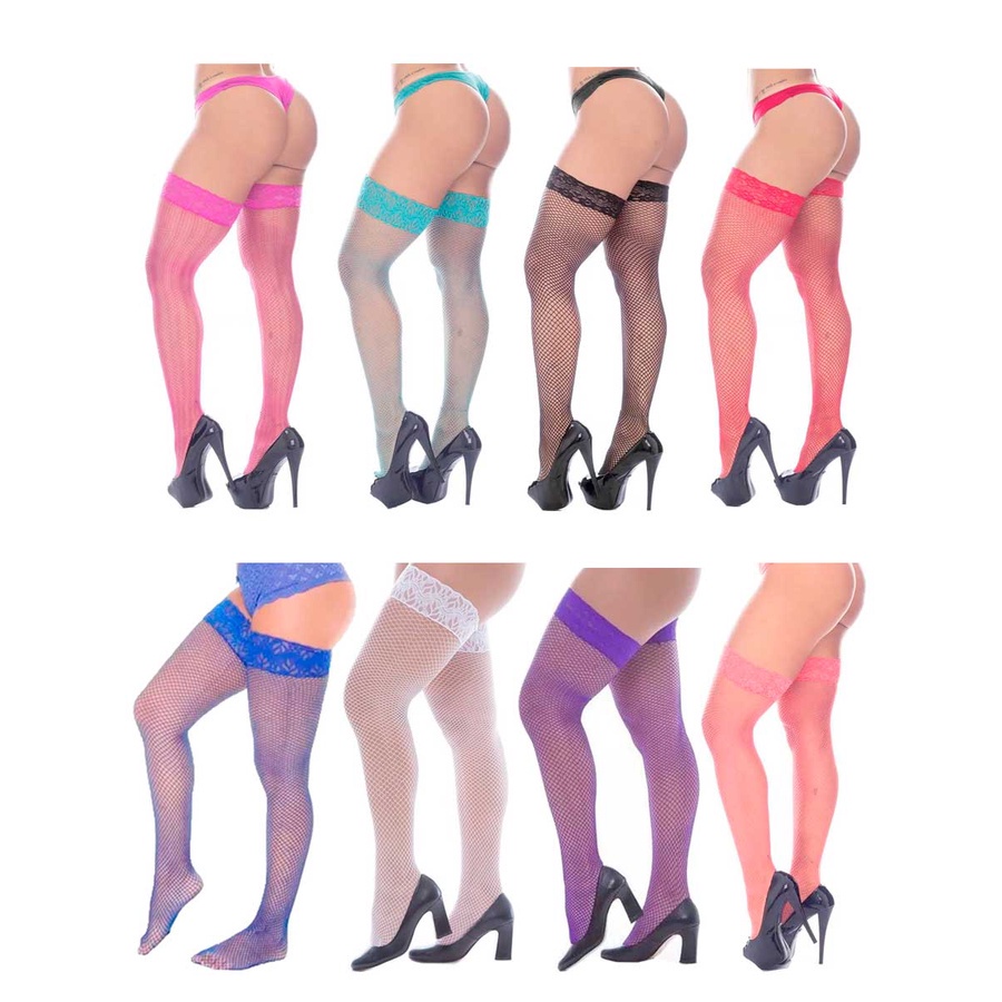 Meia Arrastão / Lisa Sexy 7/8 Preta Branca Coloridas Rosa Coral Verde Azul Roxa Sensual