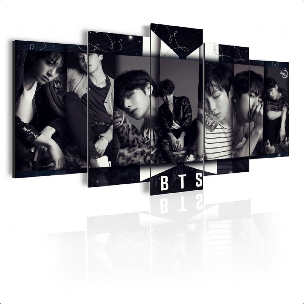 Quadro Mosaico 5pçs 105x60cm Decor Sala Quarto K-pop 02 Bts