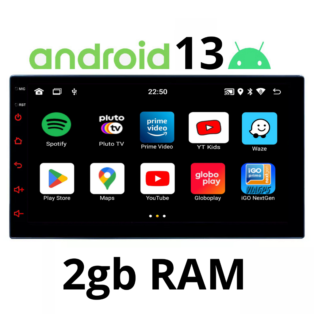 Central Multimidia Android 13 Universal 2din 7 Pol Wifi App Waze Youtube Spotify