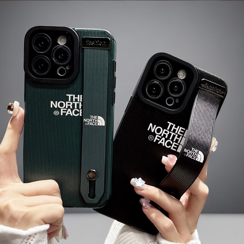 Marca De Luxo Couro De Veludo North Face Wrist Strap Stand Azul Cinza Caixa Para iPhone 15 14 13 12 11 Pro Max Plus Suporte De Pulseira Square Shockproof Capa De Telefone Macia